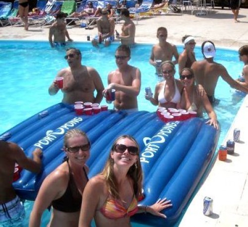 Spending countless hours playing beer pong in a crowded college bar certainly isn’t doing anything to help the people at your local swimming hole know you any better. So maybe you should haul a goddamn beer pong table along with you. That way, everyone will know exactly what you’re about (which is likely date rape and The Dave Matthews Band).